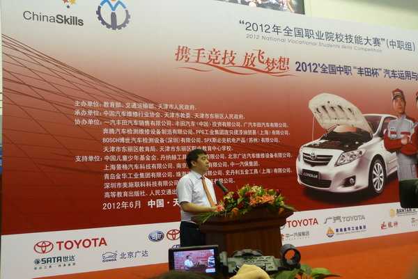 本司訊:2012626日至28日,由國家教育部、交通運輸部、天津市人民政府聯合主辦,豐田汽車中國)投資有限公司、一汽豐田汽車銷售有限公司、廣汽豐田汽車有限公司協辦的“2012年全國中職‘豐田杯’汽車運用與維修技能大賽”在天津舉行。